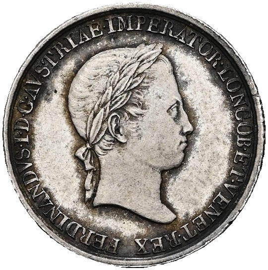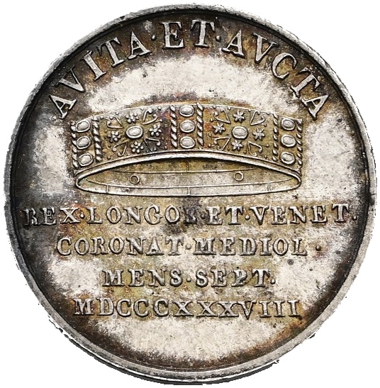 Menší žeton ke korunovaci Ferdinanda V. na lombardského krále v Miláně 6.9.1838
